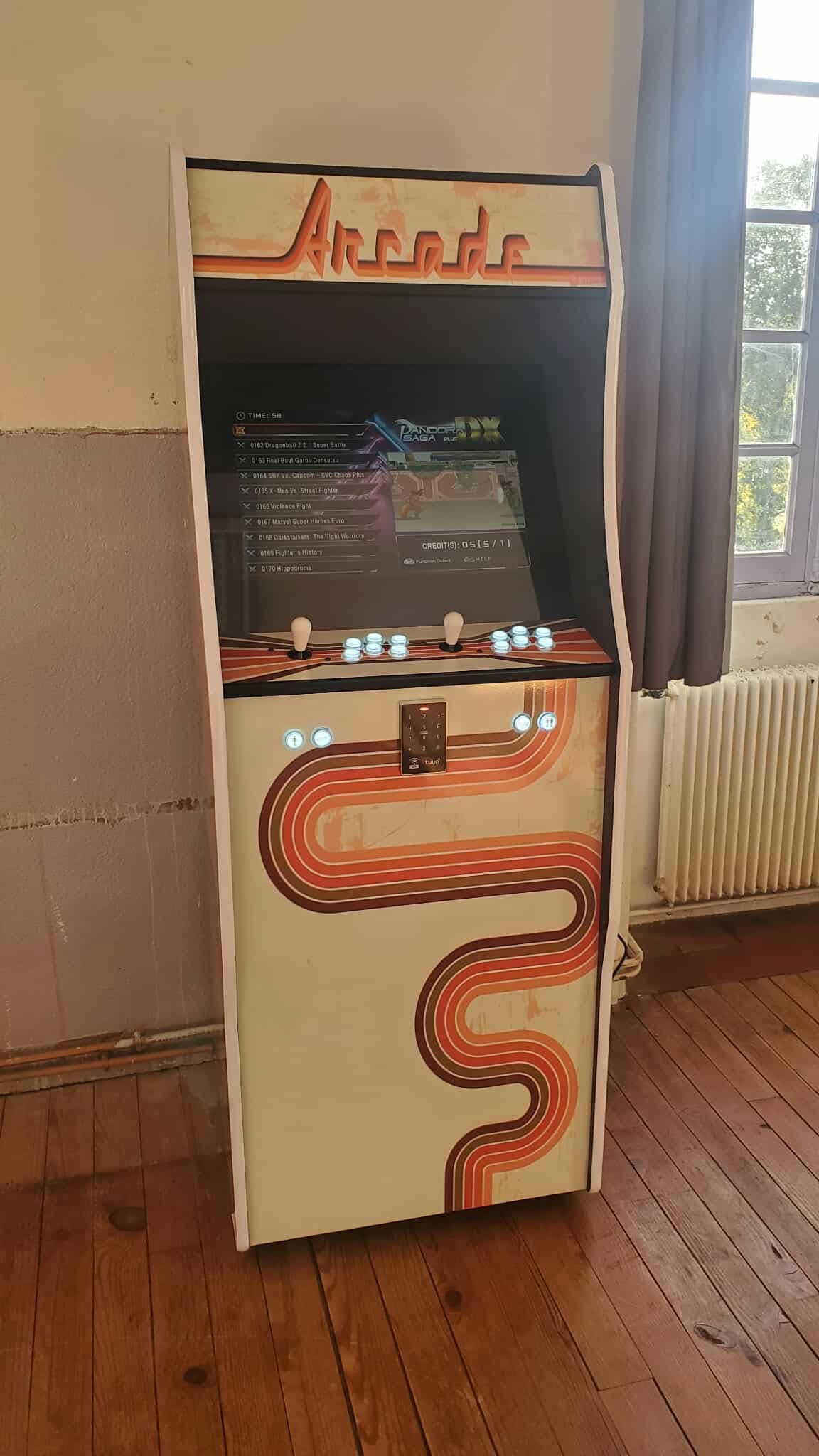 Une borne d'arcade permettant de jouer au joystick, seul ou à deux, sur une sélection de plus de 20 000 jeux rétros de tous les styles (combat, tir, sport...), pour un nombre illimité de parties.